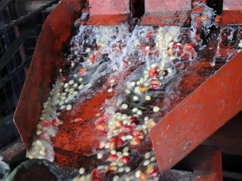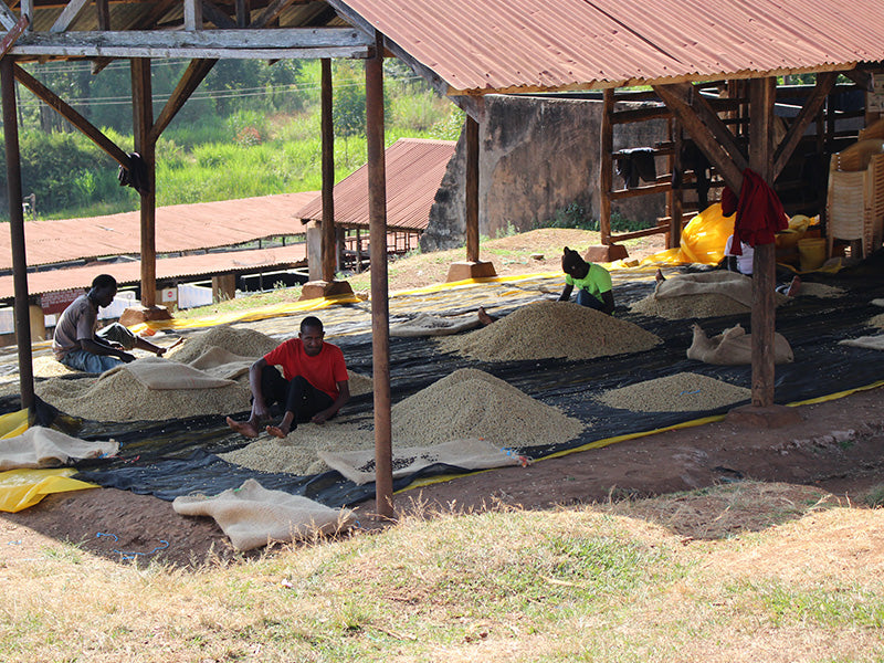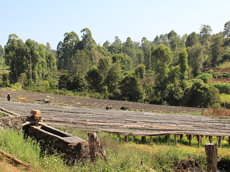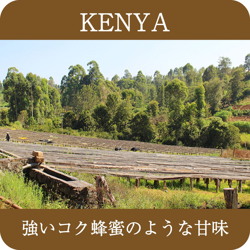このコーヒーは、ケニア式のウォッシュ精製で仕上げられています。コーヒーチェリーを果肉除去した後、カナルと呼ばれる水路を使って綺麗に洗浄し、アフリカンベッドで7日から15日間かけて乾燥させています。この精製方法は多くの水を使用しますが、使った水はそのまま捨てずに、浄化層に一旦貯められ、微生物の力を使用して浄化し、環境に影響がない状態にしてから排水として処理されています。また精製所では、周辺のコーヒー農家さんにシェードツリーの植樹を推奨しており、農家さんのコーヒー農園ではバナナやマカダミアナッツ、豆類などさまざまな植物が植えられ、コーヒーの生育を助ける働きをしています。